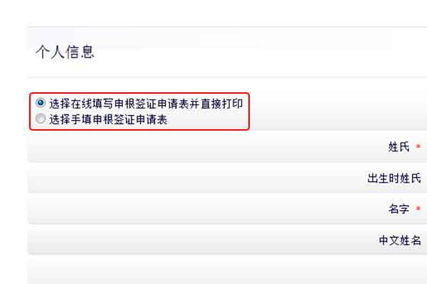按照个人习惯不同,表格填写可以”选择在线填写申根签证申请表并直接打印”和“选择手填申根签证申请表”两种方式,正常登陆后系统都是自动选择在线填写。如你选择手动填表,那么就需要你另外下载表格(表格下载链接:https://cn.tlscontact.com/cnBJS2fr/page.php?pid=download_forms)打印后填写,那么这样相对来讲在线填写的信息内容就要少很多。