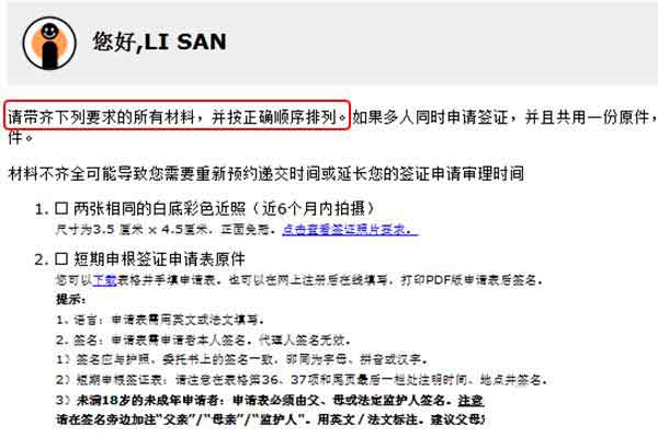 最后按照要求带齐所有材料,并按正确顺序排列。如果材料不齐全可能会导致你需要重新预约递交时间或延长你的签证申请审理时间。