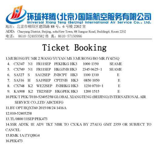 ★机票预订单原件