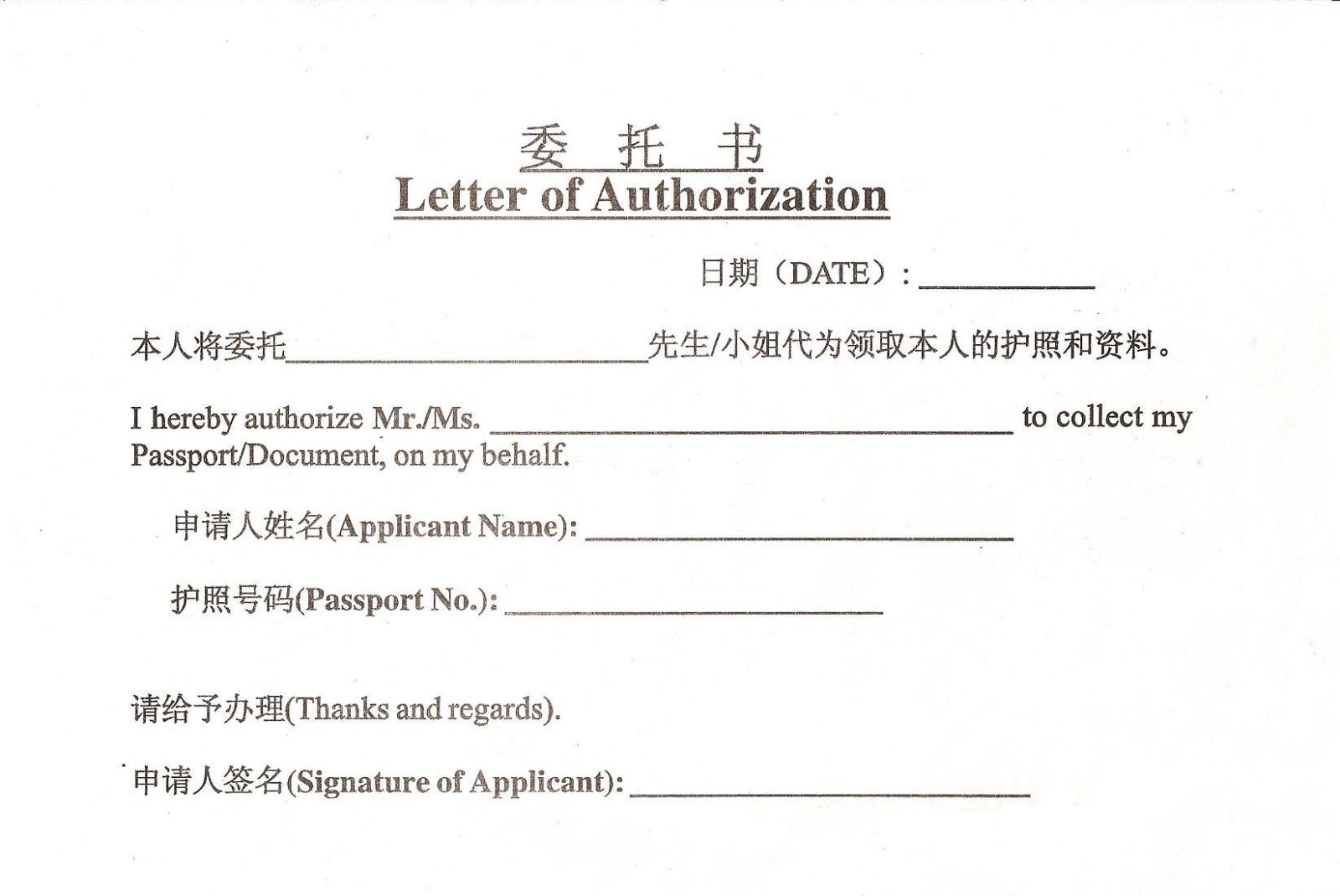 ★代递代取委托书